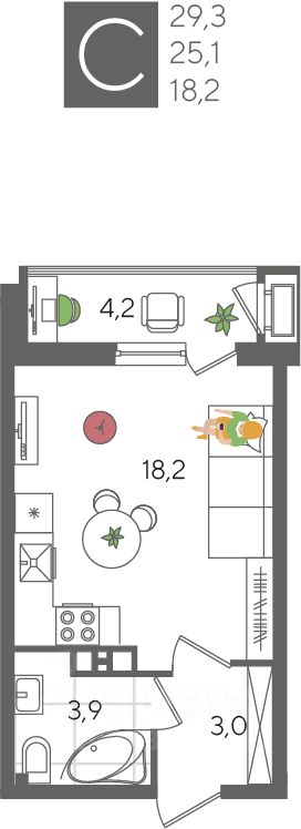 В продаже студия от застройщика! ЖК "Рекорд", г. Краснодар, Литер 1, общей площадью 29.3 кв.м., на 5 этаже.