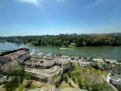 Две просторные комнаты и роскошная кухня-гостиная выходят окнами на захватывающие дух просторы реки Кубань, живописного парка и величественные горы!