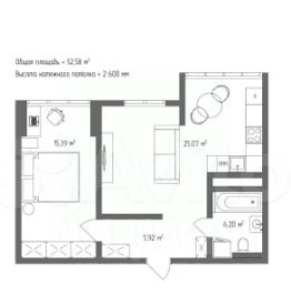общая площадь 52.58 м2