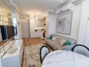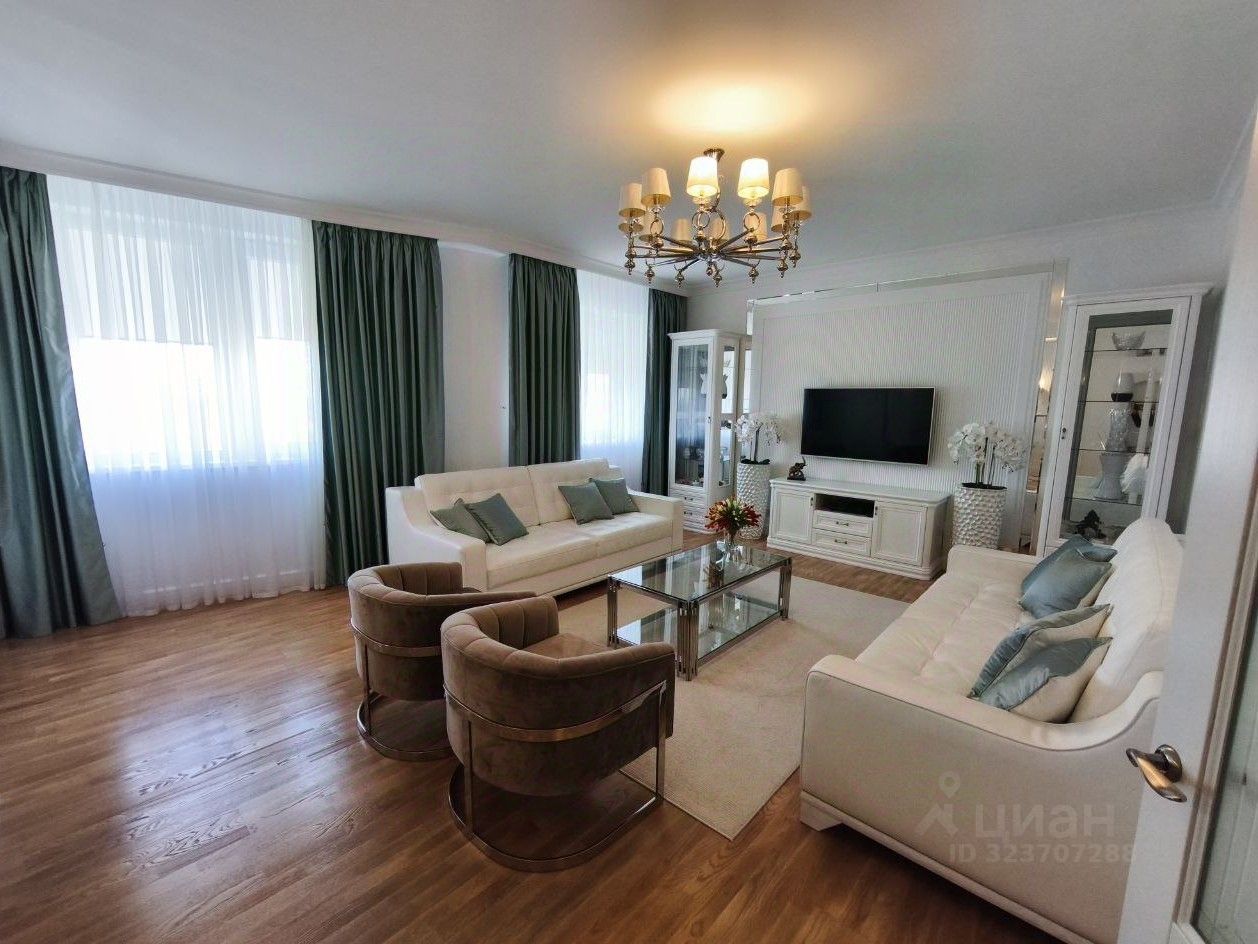 В квартире 4 просторные спальни, гостиная более 40 кв.м., кухня-столовая с панорамным остеклением, 2 санузла, кладовая. Выполнен качественный ремонт из современных и экологически чистых материалов. Остaётся вся мeбель и бытoвая техника.