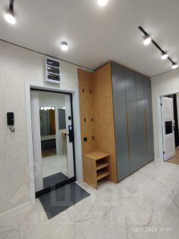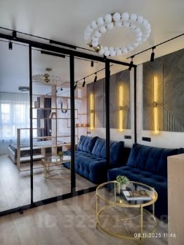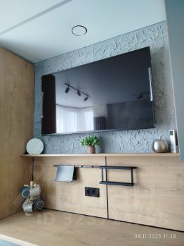 В зале: гардеробная на всю стену с зеркальными дверями купе, раскладной диван , кровать 160*200 с подъёмным механизмом, с матрасом 25 см высотой; большой стеллаж, журнальный столик, TV 55 диагональ, кондиционер 12ка.