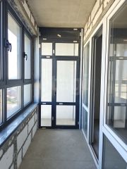 Студия просторная и светлая, большие панорамные окна. На лоджии предусмотрено помещение для установки сплит-системы.