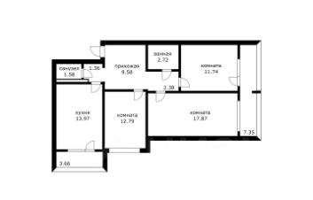 Это лучшая планировка в этих домах: кухня около14 квадратных метров, 3 просторные комнаты, большая ленточная лоджия, раздельный санузел, удобная прихожая. Окна из кухни-гостинной и спальни выходят во двор, а окна лоджии смотрят на зеленую придомовую территорию.