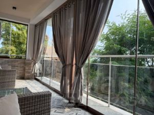 Квартира делалась под себя , материалы качественные. Установлен кухонный гарнитур с техникой ( большой холодильник, посудомойка, свч, индукционная плита). В каждой комнате кондиционер и бризер, теплые полы и батареи отопления на дистанционном управлении, установлено видеонаблюдение, отключение воды и электричества клавишами у выхода ( как в гостиничных номерах), тв в каждой комнате. Высококачественные стеклопакеты , в кухни-гостиной раздвижные окна . Балкон закрыт безрамным остеклением. Очень качественно сделана проводка и сантехника. В квартире установлен ИБП(источник бесперебойного питания).