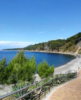 Поселок окружен сосновым лесом( Пицундская сосна ), что вместе с морским воздухом создает особый климат благоприятно влияющий на здоровье. Территория комплекса закрыта, въезд через охрану. Вся территория утопает в зелени - туи, можжевельники, сосны, пихты. Реальный собственный пляж - только для жителей (боковых подходов нет, только собственная бухта) есть причал и спуск для гидроциклов и лодок. Красивая набережная. У каждой квартиры собственные лежаки и зонтики. В 5 минутах езды п.Ольгинка и п.Небуг , где есть богатая туристическая инфраструктура ( рестораны, бассейны, аттракционы, платная рыбалка , аквапарк, мед пункт, магазины и тд).