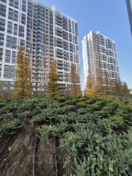 * Благоустроенный двор на стилобате с детскими и спортивными площадками
