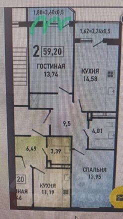 2-комн. квартира в мкр. Губернский | 56,1 кв.м | 9/16 эт. | кирпично-монолит, 2018 г. | ул. Героя Яцкова, 17