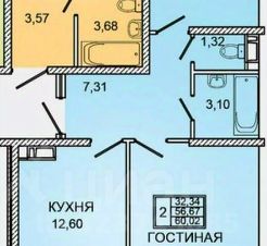 2-комн. квартира на Героя Яцкова, 9 | 56,9 кв.м | 6/22 эт. | монолит, 2017 г.