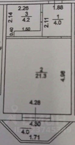 Общая площадь - 29,5 кв.м, кухонная зона - 9 кв.м