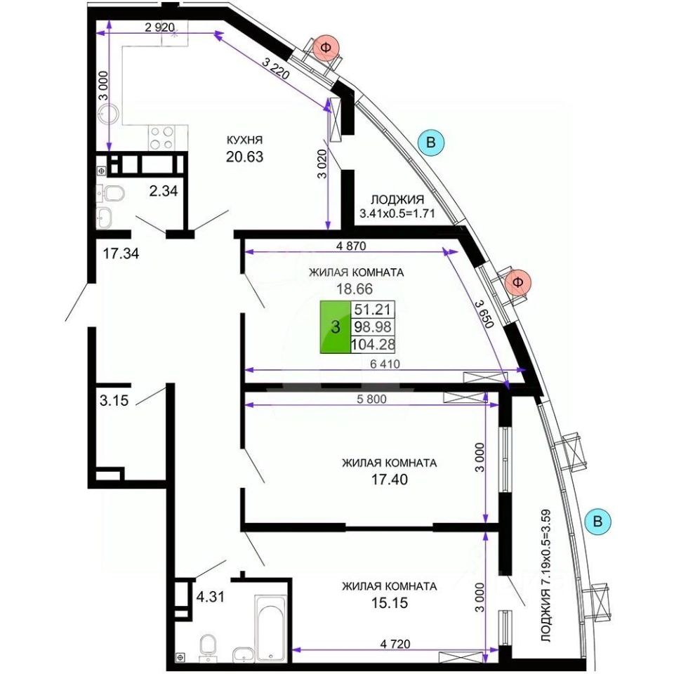 Общая площадь103,45 м²