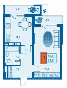 Продам однокомнатную квартиру 53,5 м2 с видом на озеро. Современный ЖК — это дом комфорт-класса с элементами премиума.