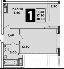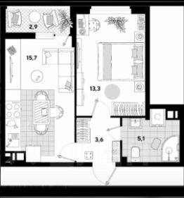 Кухня - гостиная 15,4 кв.м. + лоджия 2,9 кв.м.