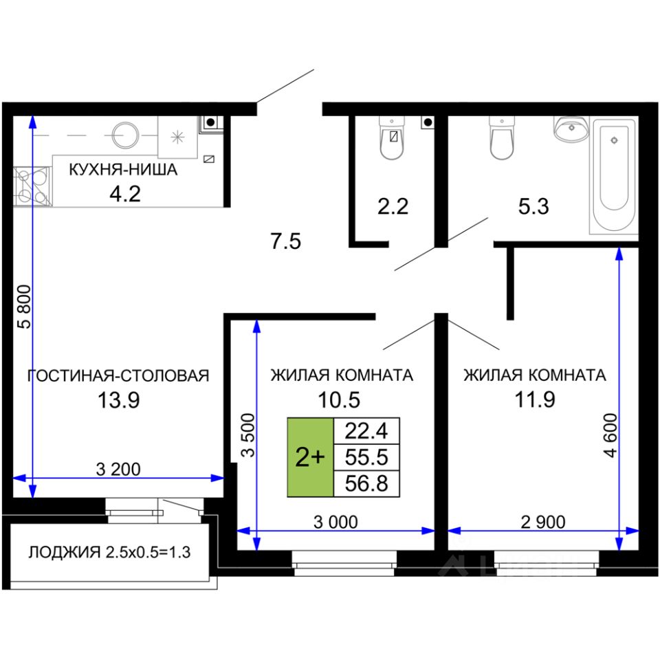 Продаётся 2-комнатная квартира в сданном доме (Литер 24 - 12 этап), срок сдачи: III-кв. 2024, общей площадью 56.8 кв.м., на 2 этаже. Расположение, транспортная доступность