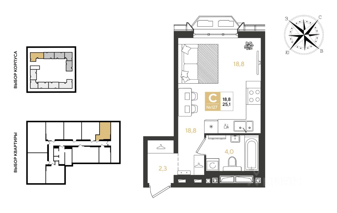 Продаётся студия в строящемся доме (Литер 1), срок сдачи: II-кв. 2028, общей площадью 25.1 кв.м., на 14 этаже. Новый жилой комплекс "Самолёт-7" от застройщика "DOGMA" расположен по адресу Краснодарский край, Город Краснодар.