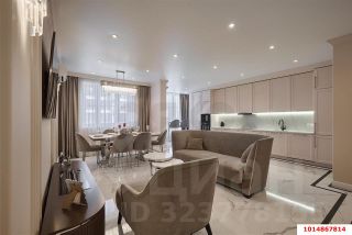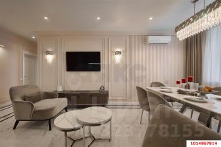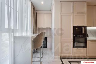 В квартире выполнен современный ремонт, теплые полы, фильтры очистки воды и измельчитель на раковине, отдельно постирочная комната, мебель делалась на заказ и везлась с Италии, техника SMEG, винный шкаф и барная стойка из натурального камня с роскошным видом на город.