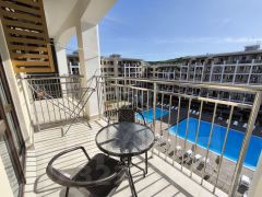 Студия расположена на 5 этаже нового 6-этажного дома с лифтом. Окно и терраса выходят во двор, где вас ждет собственный бассейн — идеальное место для отдыха в жаркие дни. На территории комплекса предусмотрены все удобства для комфортной жизни: детская площадка с мягким покрытием, теннисные столы, беговые и велодорожки, а также зона для барбекю. Для вашего удобства имеется магазины, кафе и кофейни, а также просторный паркинг.