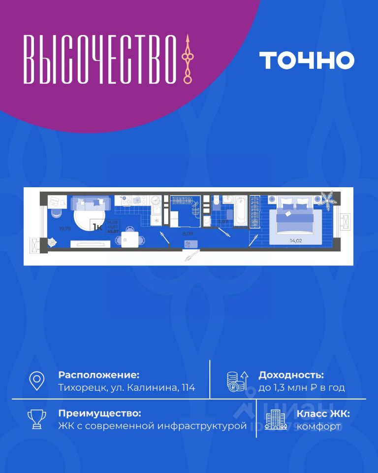 "Высочество" — первый ЖК комфорт-класса в Тихорецке. Современные технологии, новейшие представления о комфорте и эргономике жилья -это, то, что характеризует этот комплекс. Расположен в самом центре города. "Высочество" — это полностью самостоятельный жилой комплекс, жителей которого порадуют закрытый и свободный от машин двор, коммерческая галерея, спортивные и детские площадки с перголами для отдыха, уютная мангальная зона. По периметру жилого комплекса - открытый бесплатный паркинг на 370 м/мест. Недалеко от ЖК "Высочество" находятся детский сад, школы-гимназии, поликлиника, торговый центр, в пешей доступности расположен любимый сквер жителей города "Звездный".