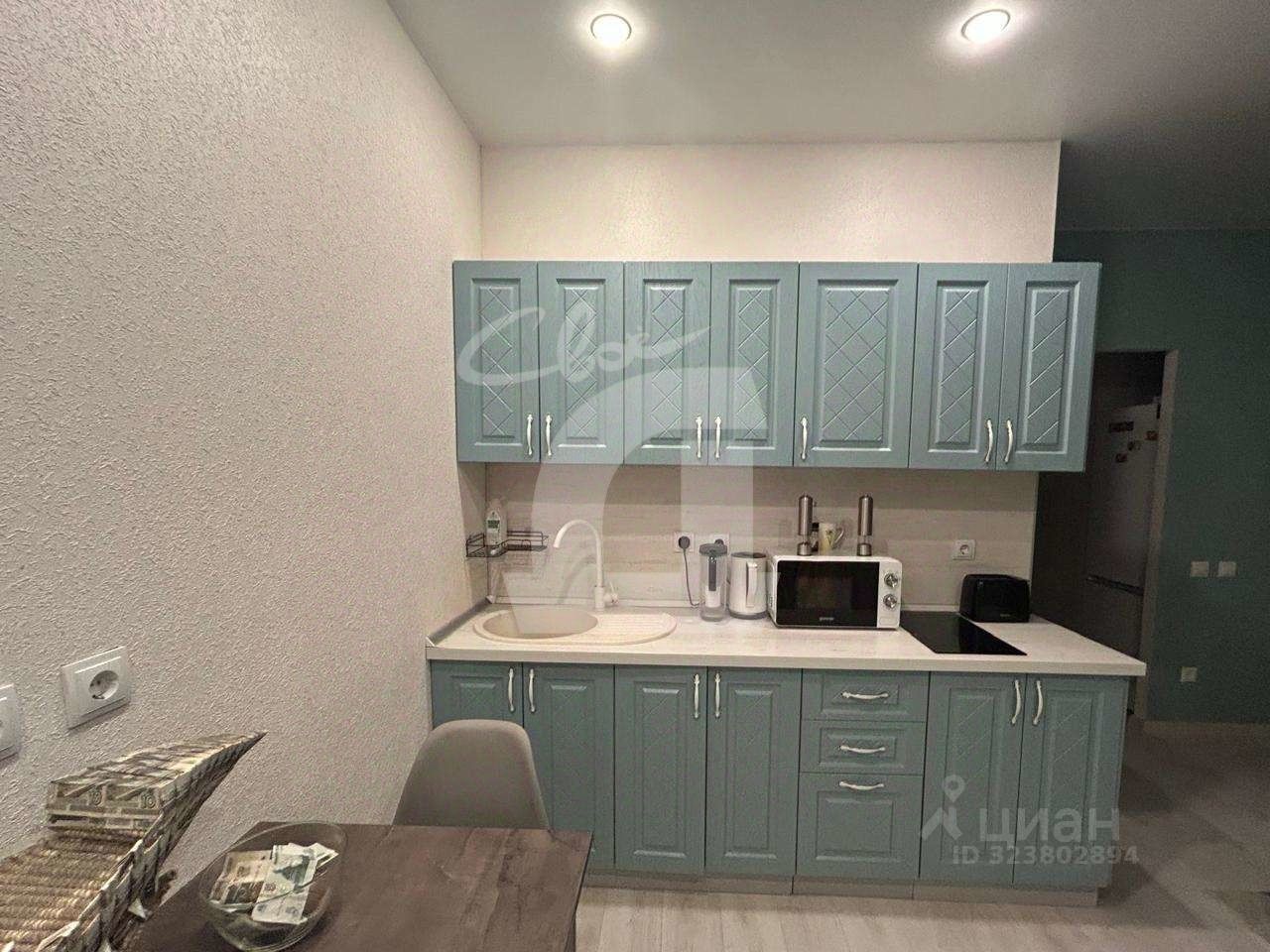 • Функциональная удачная планировка, студия правильной формы , площадь 33 кв м, имеется зона отдыха, зона кухни с мебелью и обеденным столом со стульями , гардеробная и ванная комната.