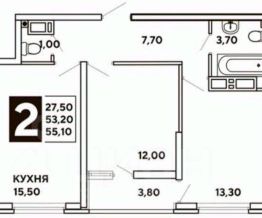 53,4 м²