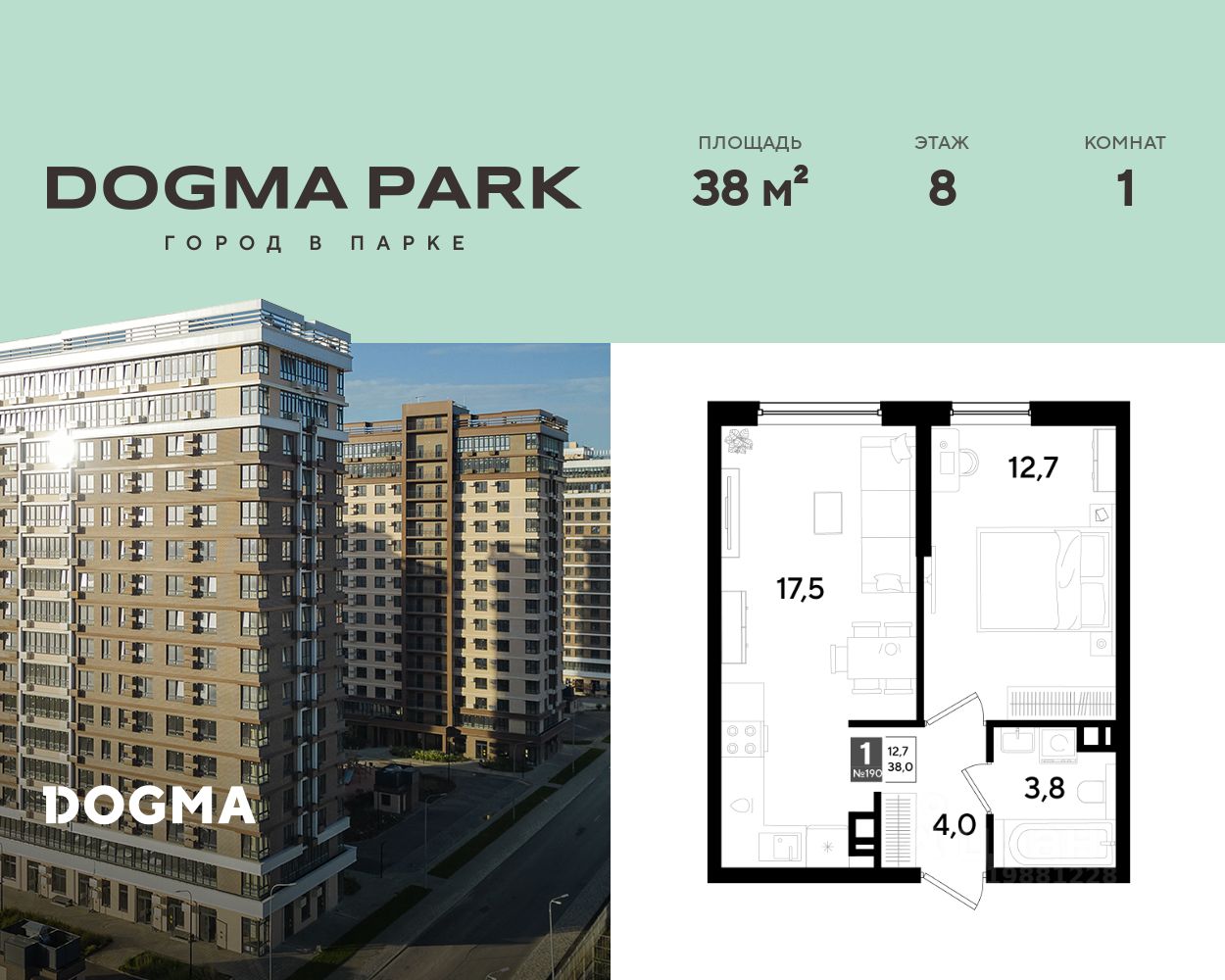 В продаже 1-комнатная квартира от застройщика! Мкр. "DOGMA PARK" г. Краснодар, Литер 36 Срок сдачи: 4 кв. 2027, общей площадью 38 кв.м., на 8 этаже.