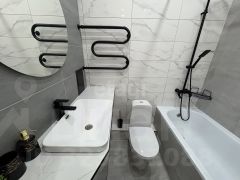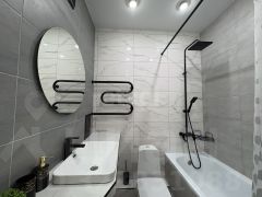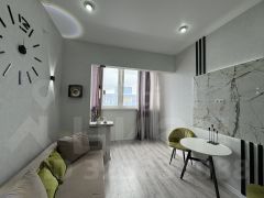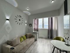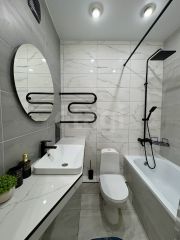 В квартире сделан современный ремонт, который включает в себя напольное покрытие ламинат 33 кл., в сан узле уложен керамогранит, так же установлен тропический душ. Новым собственникам остается вся необходимая мебель и техника: стиральная машина, сплит система, кухонный гарнитур, варочная панель, микроволновая печь, диван, телевизор, холодильник, шкаф, барные стулья.