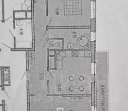 Площадь квартиры - 96м2 ,просторная кухня -гостинная 16 м2,два раздельных сан узла ,жилая площадь -60м2.
