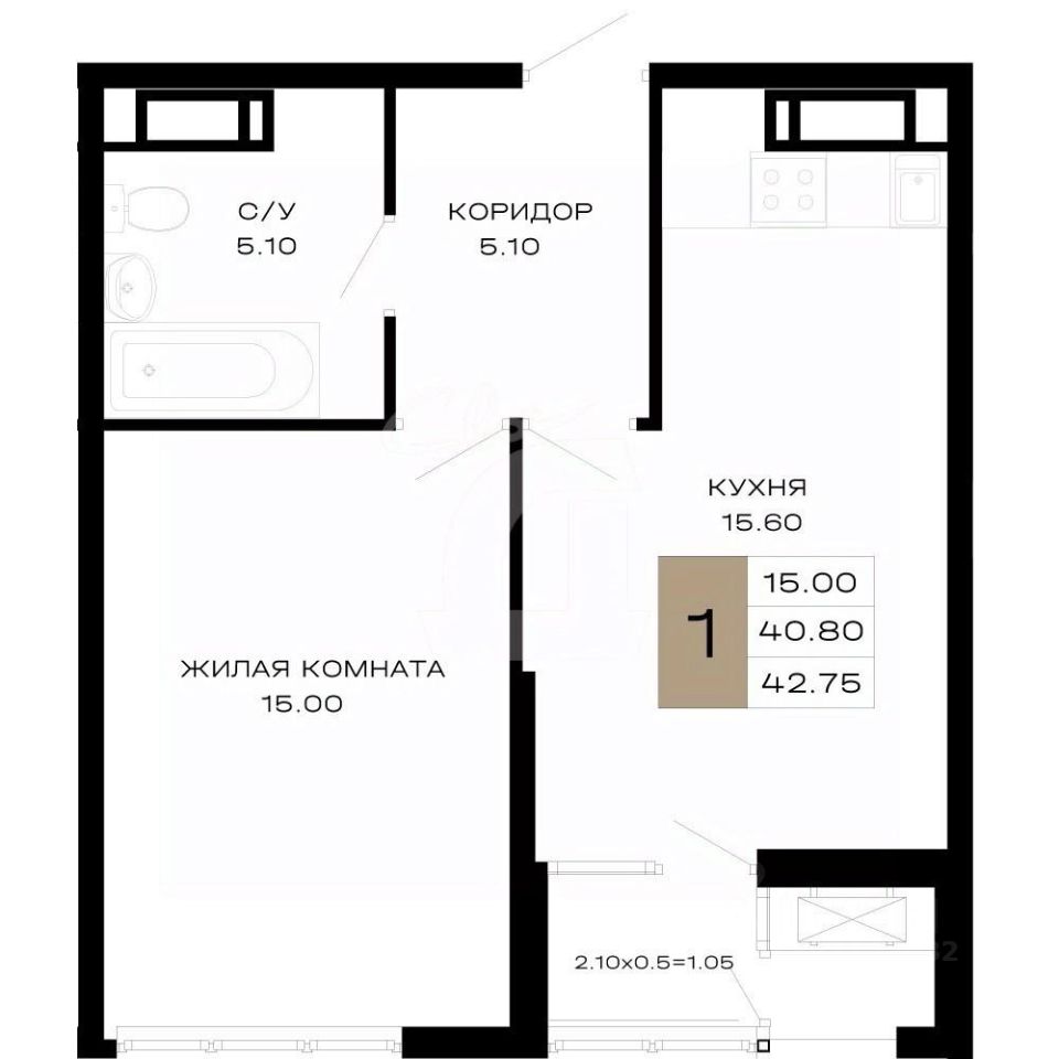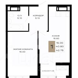 Общая площадь42,75 м²