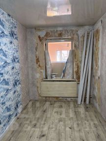 Кухня на данный момент небольшая, но есть возможность сделать ремонт под себя, и расширить кухню до большой кухни-гостинной.