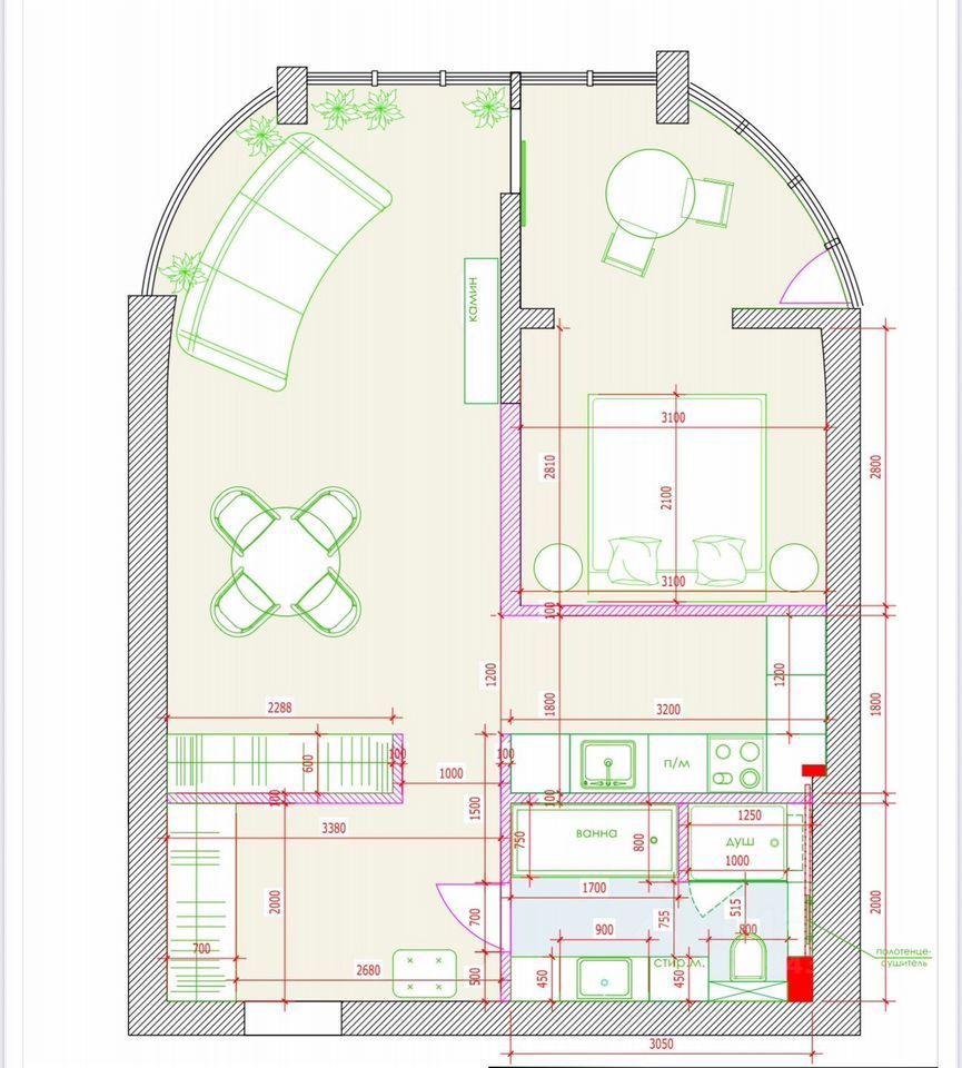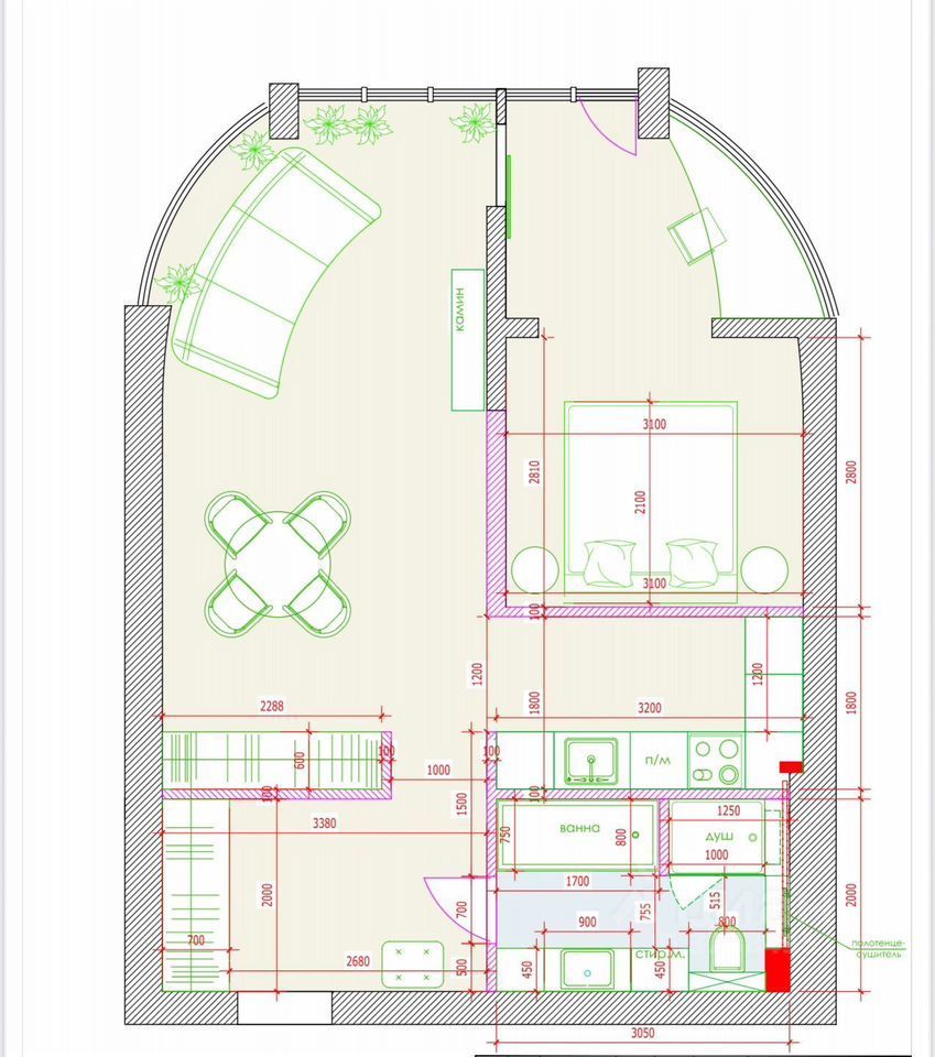 Удобная планировка, позволяющая рационально использовать пространство.