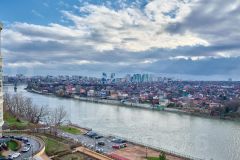 Квартира находится на 10-м этаже, откуда открывается панорамный вид на реку и окружающие пейзажи. Уютный ленточный балкон с панорамным остеклением станет вашим любимым местом для отдыха и наслаждения видами.