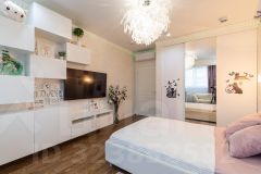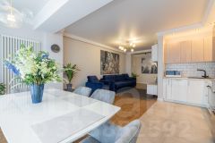 Квартира с ремонтом и мебелью. На полу паркетная доска, теплый пол в зоне плитки.