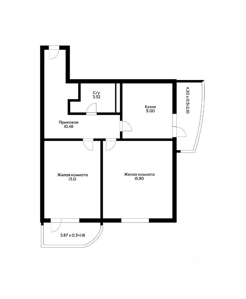Двухкомнатная квартира общей площадью 52 м2, а за счет двух лоджий площадь увеличивается 55.9 м2. Две спальные комнаты 13 м2 и 16 м2, кухня 9 м2 с выходом на лоджию, а также совмещенный санузел 3.5 м2, обратите внимание на эргономичный коридор, в котором сразу при входе есть возможность организовать небольшой гардероб.