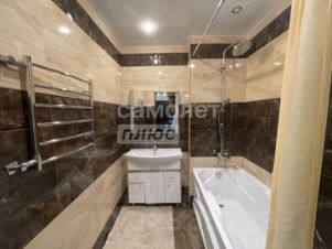 Санузел раздельный, светлый, отделан кафелем, качественная сантехника. Площадь туалета - 1,5 кв. м, площадь ванной комнаты - 3,8 кв. м