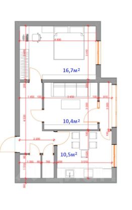 Комнаты изолированные, площадью 16,5 и 10 кв м, правильной прямоугольной формы. В спальне и на кухне установлены кондиционеры.