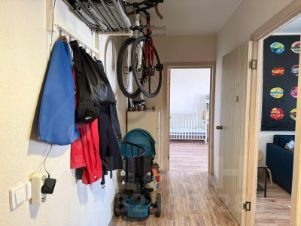 В коридоре под потолком крепления для велосипедов, проходу не мешают.