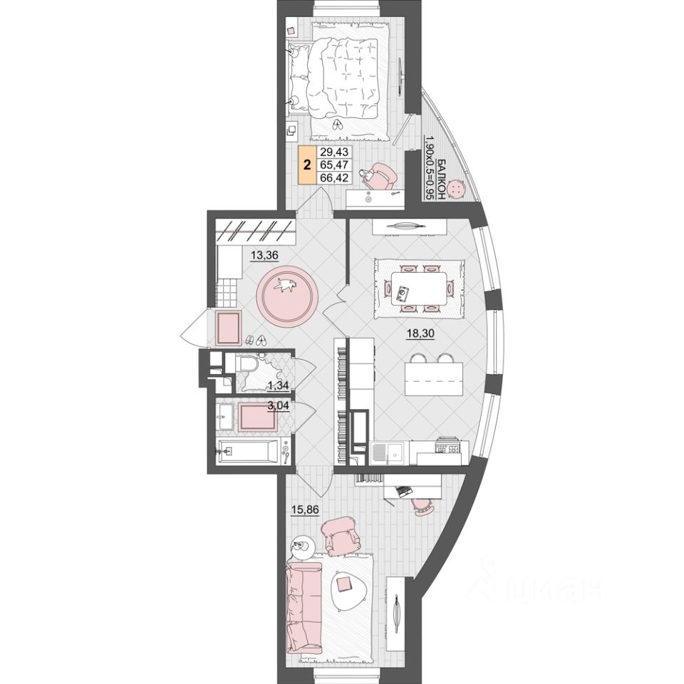 Продаётся 2-комнатная квартира в строящемся доме (Литер 11), срок сдачи: IV-кв. 2025, общей площадью 66.42 кв.м., на 4 этаже. Ипотека от 5,9% на квартиры от ССК на весь срок кредитования