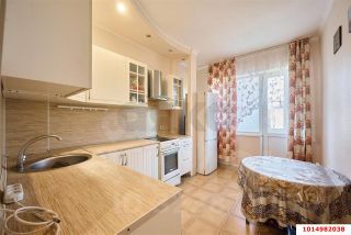 Коридор, кухня - плитка на полу, в комнатах хороший ламинат, качественные обои, в комнатах натяжные потолки (кроме кухни). Межкомнатные двери из массива дерева (Беларусь).В квартире останется : сплит система, электрическая плита Электролюкс, вытяжка, холодильник, стиральная машина Самсунг, водонагреватель Электролюкс, мебель (кухонный гарнитур останется и т.д. - обсуждается лично).В шаговой доступности (300-500метров) магазины: "Пятёрочка"-2шт, "Магнит", "Чижик", Лисичка", аптеки - 2шт, церковь, салон-парикмахерская, автосервис (несколько штук,) клиника "Семейные традиции".Конечная остановка маршрутка 56; 83; автобус 55. В шаговой доступности 2 школы, 3 садика - (расстояние 1,2км, имеются тротуары, чтобы детки не шли по обочине и лужам) + 5 школ поблизости (до одной ходит школьный автобус от остановки-300м от дома), детские площадки.Недалеко расположены торговые центры и крупные гипермаркеты: на машине 5-10 минут до АЗС, гипермаркета "Магнит", Лемана Про", "Сыр" "Табрис", ТЦ "Вест Молл", "Лента" "Красная Площадь"Рядом мкр Немецкая деревня с красивым озером, микрорайон Достояние с прогулочными зонами.Дом расположен в хорошем месте - машины не гоняют, во дворе и под окнами не стоят мусорные баки - они в стороне от дома. Вокруг частный сектор - строек многоэтажек не планируется.Торг будем обсуждать с конкретным покупателем после просмотра (по телефону не торгуемся)Квартира отличная! - ждет своих новых хозяев чтобы радовать их уютом. Дополнительно оплачивается комиссия с покупателя. Код объекта: 1014982038