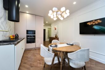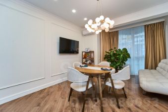 Квартира с дизайнерским ремонтом, остается мебель и техника, витражное остекление на кухне, планировка квартиры: комната -14.9 м2,кухня гостиная-22 м2, общая площадь квартиры 53 м2