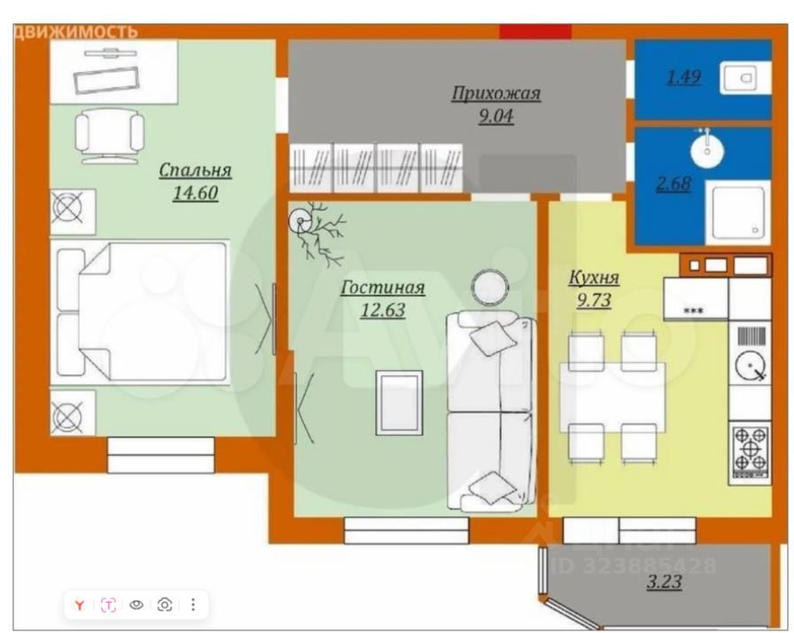 поликлиника. Один взрослый собственник. Без обременений. Никто не прописан.