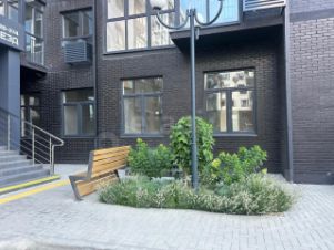 Двор оснащен универсальными спортивными и игровыми площадками и тренажерами. Благоустройство территории выполнено на высоком