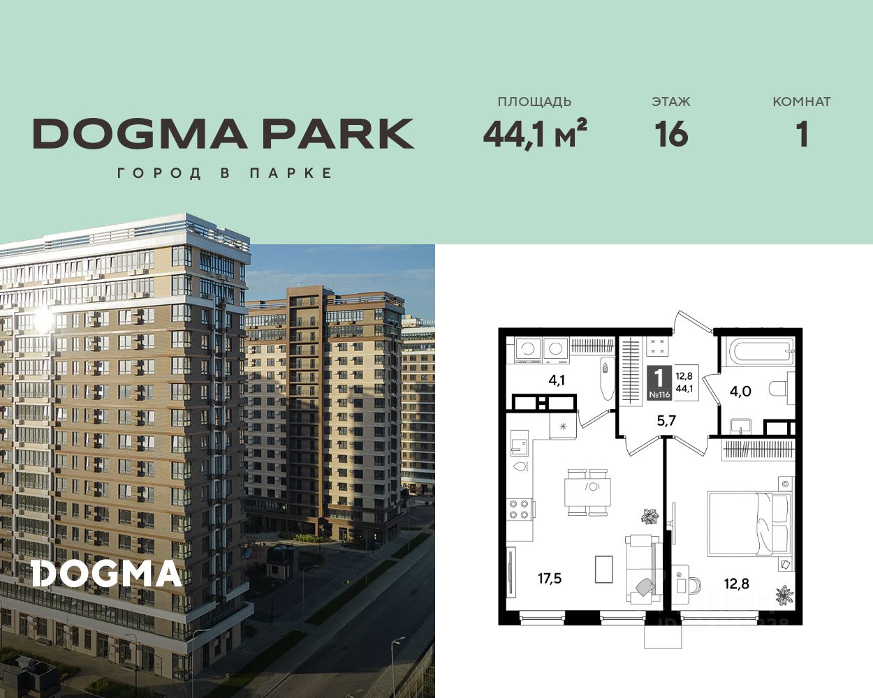 В продаже 1-комнатная квартира от застройщика! Мкр. "DOGMA PARK" г. Краснодар, Литер 14 Срок сдачи: 4 кв. 2027, общей площадью 44.1 кв.м., на 16 этаже.