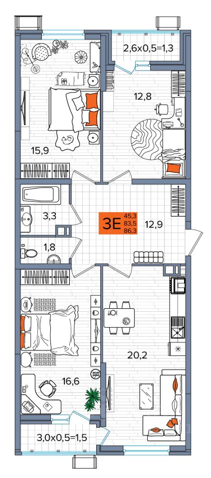 площадью 86.3 кв.м. на 7 этаже в 4-м подъезде - это оптимальный выбор для тех, кто ценит уют, качество и современный комфорт.