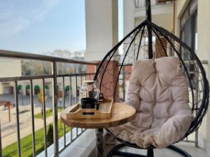 В квартире сделан качественный евроремонт. Установлена современная мебель и необходимая техника, поэтому можно заехать и жить без дополнительных вложений. Санузел совмещенный, что удобно для экономии пространства. Из окон открывается вид во двор. Большой балкон станет приятным дополнением для утреннего кофе на свежем воздухе.