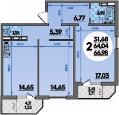Продаётся 2-комнатная квартира в сданном доме (Литер 14), срок сдачи: I-кв. 2025, общей площадью 66.46 кв.м., на 6 этаже. РАСПОЛОЖЕНИЕ