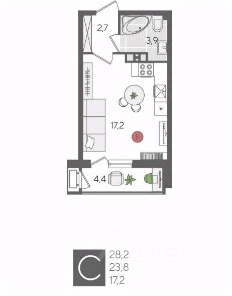 В продаже студия от застройщика! ЖК "Рекорд", г. Краснодар, Литер 1, общей площадью 28.2 кв.м., на 8 этаже.