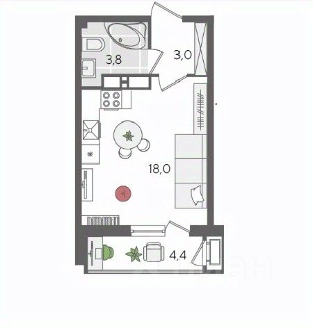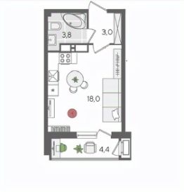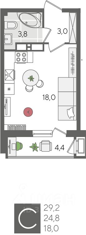 В продаже студия от застройщика! ЖК "Рекорд", г. Краснодар, Литер 1, общей площадью 29.2 кв.м., на 16 этаже.