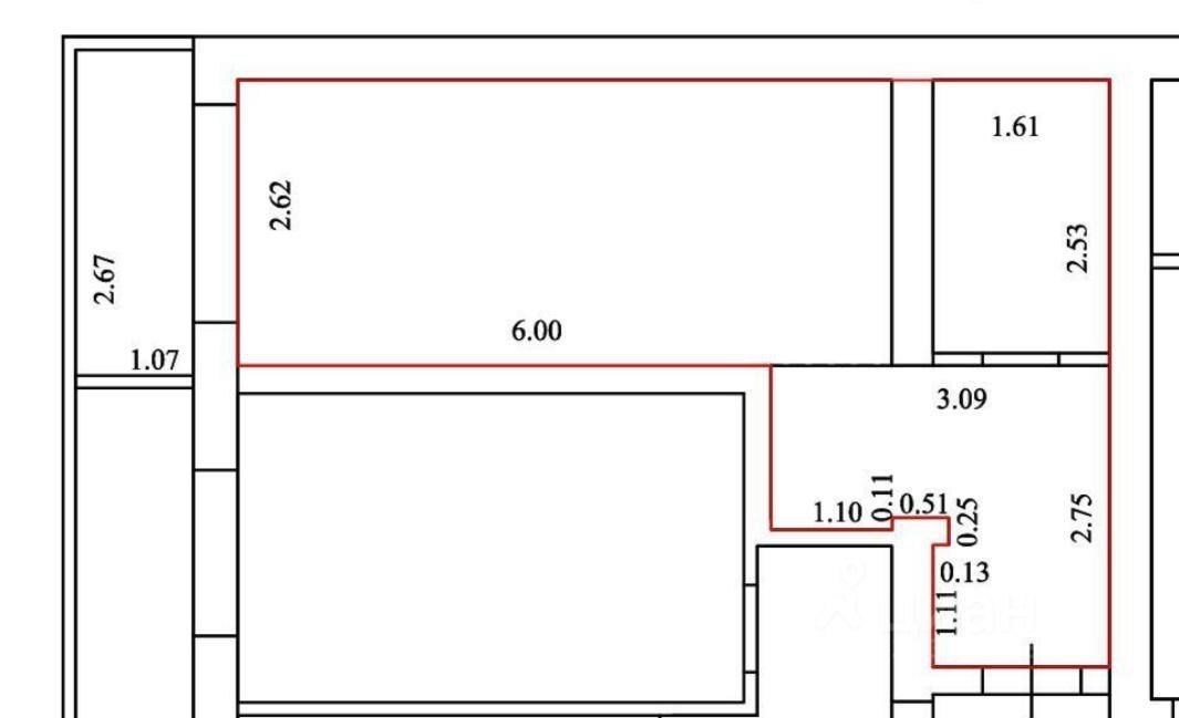Общая площадь квартиры- 26,4 кв.м, что идеально подходит для комфортного проживания одного человека или пары.