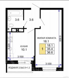 1-комн. квартира 35,4 кв.м в ЖК "Дыхание" | 11/16 эт. | монолит-кирпич