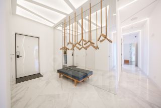 Квартира оборудована системой умный дом, которая позволяет управлять открытием штор, системой фонового звука, кондиционирования, отопления, домашним кинотеатром, приточно-вытяжной вентиляцией.