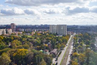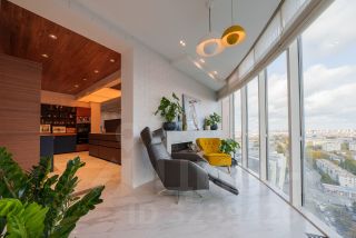 Квартира площадью 370 кв. м расположена на 20 этаже нового современного дома. Из окон открывается завораживающий вид на Чистяковскую рощу и городскую панораму.